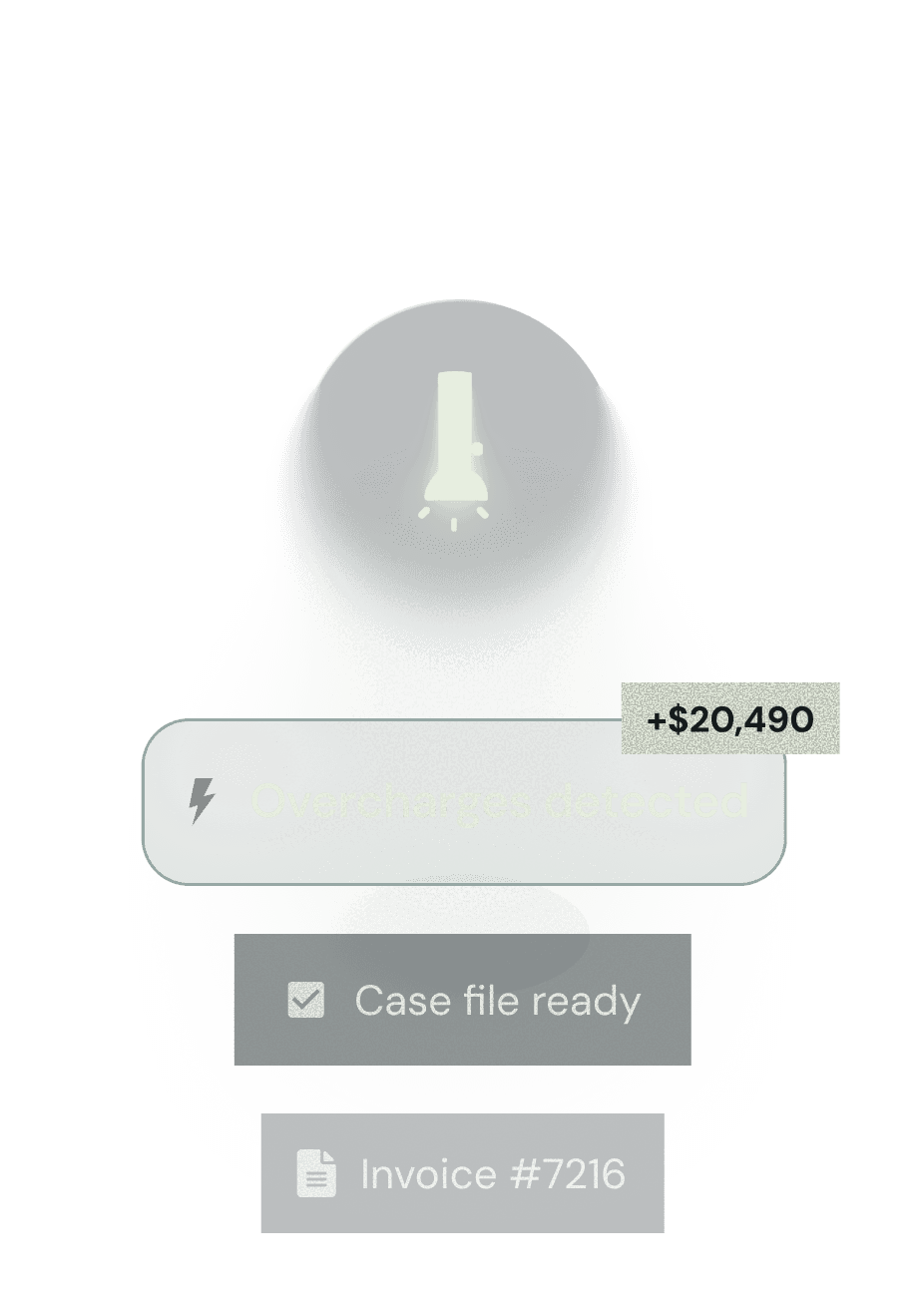 Catch overcharges automatically and generate ready-to-submit case files.